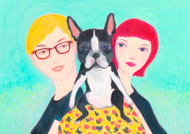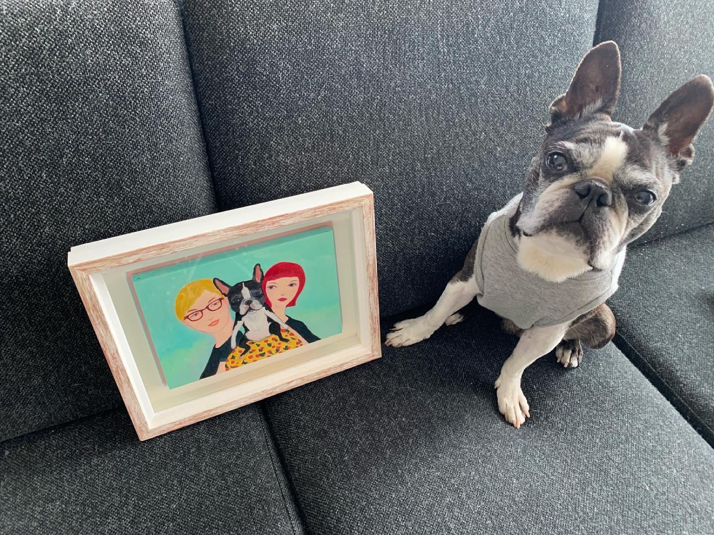 ご依頼の経緯は以前に描いたボストンテリアのなっちゃんの絵を
