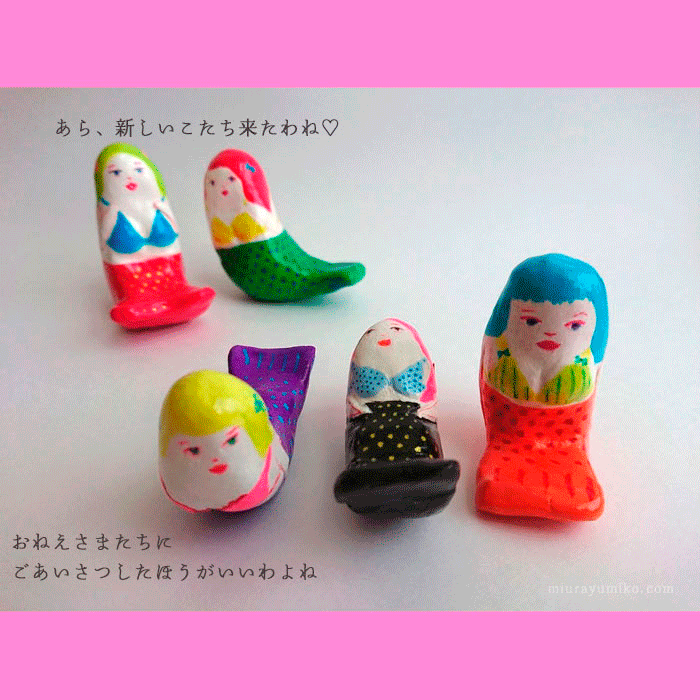 素材:石塑粘土、アクリルガッシュ、水性ニス