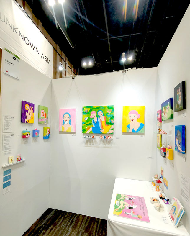 初日はVIP PREVIEWで多くの審査員、レビュアーさんがいらっしゃって、やや緊張しましたが、沢山の方とお話ができてとても貴重な体験となりました。絵と立体を展示したことで、今まで絵だけで展示していたのとは違うご感想もあり、これからも立体の見せ方を考えて、絵とともに制作していこうと思いました。