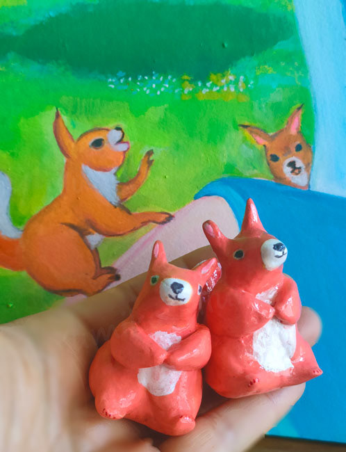 最初は絵だけのつもりでしたが、立体も合わせて作って展示したら、